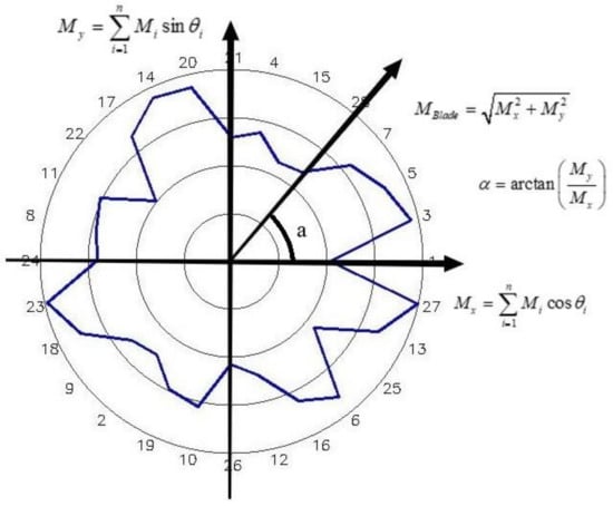 where, is the component of gravity moment in direction and direction respectively; is the moment of gravity of blade ; is the angle between the gravity moment vector of the blade and the positive direction of axis , is the residual unbalance, is the angle between the residual unbalance vector and the positive direction of axis .