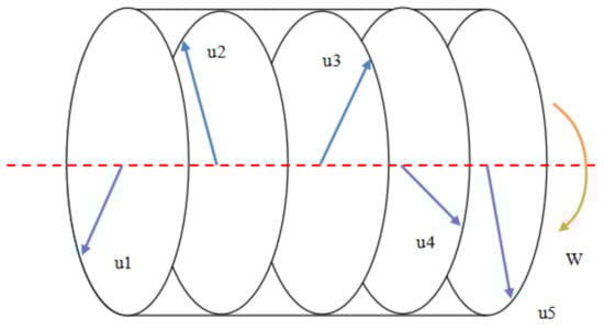 In addition, the distance coordinates of the force points between the other discs and blade groups are defined as . The direction of unbalance of each stage disc and blade is taken as a design variable, and the component of unbalance force on axis and axis is expressed as Equations (10) and (11).