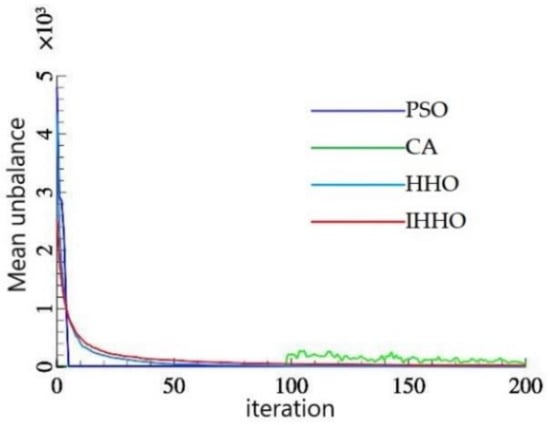 Table 5 compares the results of the improved Harris Hawk optimization algorithm with particle swarm optimization, genetic algorithm, and the original Harris Hawk optimization algorithm. The optimal imbalance of improved Harris Hawk optimization algorithm is reduced by 79.71%, 99.48%, and 54.92%, respectively. The IHHO proposed in this paper is much lower than other algorithms in finding the optimal sequence and is obviously superior to the other three algorithms in finding the optimal solution.