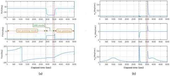 To obtain VHRSI, SAR antennas of three satellites must be aimed at the same ground target while performing SAR imaging. This section describes the development and verification of an autonomous attitude control algorithm, applying the concept of the optimized RADN sectors for a multistatic SAR satellite. The requirements of the autonomous attitude control algorithm of the multistatic SAR system are as follows [,].