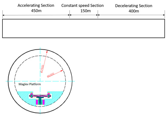 The maglev flight tunnel is a new concept in wind tunnel equipment, which uses the concept of a vacuum–pipeline train combined with the moving model test method. The rationale is to install a maglev-driven model in a long, straight, closed pipe. The system uses electromagnetic suspension, traction, and directional technology to drive a high-speed model to simulate the physical movement processes of various types of aircraft and high-speed trains. By constructing a test state of “moving model–static wind” that is close to the real flight environment and moving characteristics of the test models, the maglev flight tunnel can satisfy the aerodynamic testing needs of aerospace vehicles and high-speed trains under the wide Mach and wide Reynolds number ranges, low noise, low turbulence intensity, high vacuum (high altitude), special gas medium, and restricted space conditions, along with interdisciplinary problems [3,4].