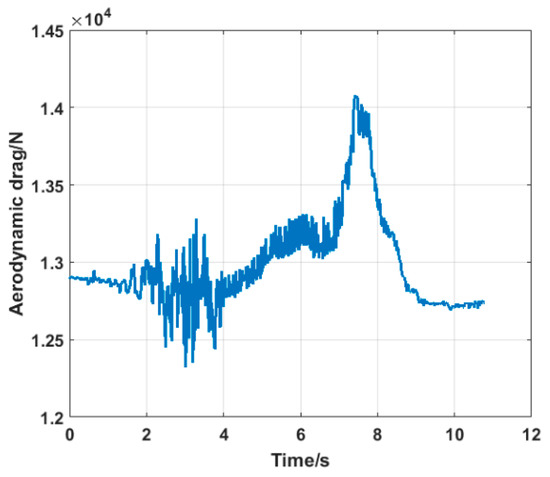 Time–history curves for aerodynamic drag under moving model in working condition 1.