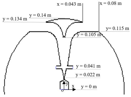 Table 1 lists the thrust values obtained through experiments and numerical simulation under different main gas source pressures, where P represents the air source pressure, Ftest represents the resultant thrust value in the x direction measured through experiments, fl and fr represent the calculated thrust values of the left and right nozzles in the x direction, and F represents the resultant thrust of fl and fr. It can be seen that the relative error was within ±5%, which suggests that the numerical method adopted in this paper is reliable.