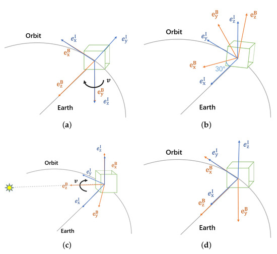 Figure 4. Diagram of the four attitudes: (a) attitude 1; (b) attitude 2; (c) attitude 3; (d) attitude 4.
