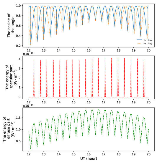 The TLE of Orbit 1 in Table 1 is used in the following simulations. The reflection conditions are the same as those in Section 2.2.1. The attitudes fall into the following four cases: