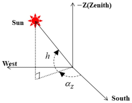 Figure 3 shows a sketch of the position of the sun. As shown in the figure, is the sun elevation angle, which can be expressed as []