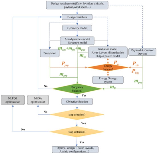 - Zhang, L.; Lv, M.; Zhu, W.; Du, H.; Meng, J.; Li, J. Mission-based multidisciplinary optimization of solar-powered hybrid airship. Energy Convers. Manag. 2019, 185, 44–54. [Google Scholar] [CrossRef]