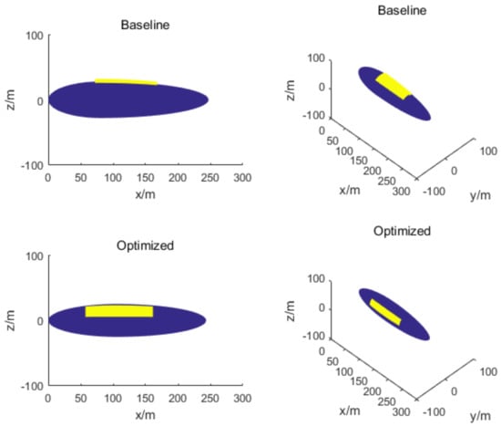 Some previous research is focused on the performance optimization of solar array area itself. Garg et al. [] proposed a method for optimizing the output energy of solar arrays, but considering only two design variables. More detailed optimizations for solar arrays have been conducted by Li et al. [] and Liang et al. [], but they are applicable only for an envelope of specific profile. Zhu et al. [] studied the effect of layout parameters on output energy of solar array on the airship, with and without thermal effect. However, they only considered the case in which solar arrays were symmetrically placed on the upper surface of the airship.