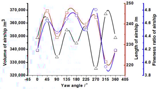 Considering the streamlined form of the airship tail, and can be selected to be 0.5212 and 2.547 [], respectively. The fineness ratio of airship is defined as