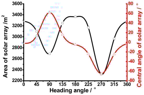 where and are the coordinates of leading edge and trailing edge of solar array, is the central angle of solar array and is the included angle of solar array.