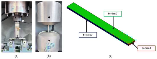 Testing and analysis of specimens: (a) three-point bending test; (b) tensile testing; (c) establishment sections for microscopic analysis.