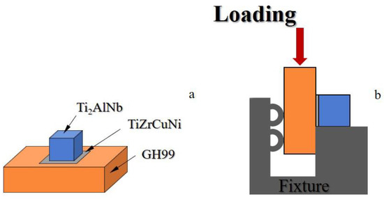(a) Brazed joint assembly diagram; (b) shear test diagram.
