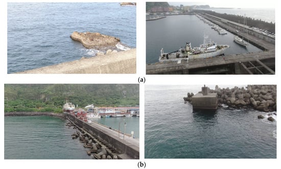 Negative samples in the HAIDA trash dataset. (a) Negative samples in the Badouzi fishing port at heights of 7 and 30 m. (b) Negative samples in the Badouzi fishing port at heights of 15 and 10 m.