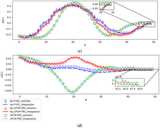 In Figure 4, we observe the fundamental alignment between discrete points and continuous curves in Figure 4a. However, it is noticeable that as we approach the end, there are deviations and discrepancies in the discrete points and continuous curves of hp-P-iSC. Interestingly, the positions of the discrete points in hp-P-iSC closely resemble those of hp-LPCM-TRS. In Figure 4b, the fitting between discrete points and continuous curves is excellent, and the trend remains consistent as we approach the end. Meanwhile, in Figure 4c, the changes in discrete points and continuous curves of hp-LPCM-TRS closely resemble those of LPCM-TRS, particularly near the end positions. However, hp-P-iSC exhibits a relatively steep change in trend as it approaches the end condition.