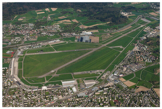- Task-Force Gebietsentwicklung Flugplatz Dübendorf. Gebietsentwicklung Flugplatz Dübendorf. Flight Plan. 1. Auflage. August 2021. Available online: https://gefd.zuerich/downloads/ (accessed on 20 August 2023).
