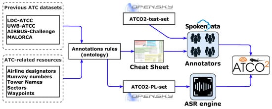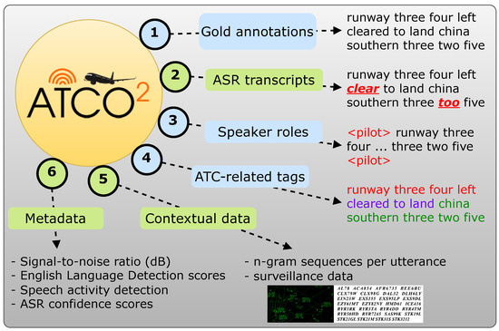 Recent work in ASR and understanding of ATC communications has been documented for trainee’s ATCo training by AENA (Aeropuertos Españoles y Navegación Aérea) [10] and MITRE corporation [11]; also including workload estimation with ASR systems [12]. In recent years, more research-oriented work has focused on pure ASR. For example, ref. [13] established the first benchmark on ASR for different ATC communications-focused databases. Furthermore, there has been a significant effort to integrate novel semisupervised learning algorithms for boosting the ASR performance with surveillance data such as [14]. This supports the idea of the growing interest in research in ASR and understanding towards ATC, with mature proof-of-concept engines that can assist ATCos in their daily tasks. Our previous work related to the large-scale automatic collection of ATC audio data from different airports worldwide was in [9]. Additionally, recent work targeted to improve callsign recognition by integrating surveillance data into the pipeline has been explored in [15] or, for instance, automating pilots report extraction with ASR tools [16].