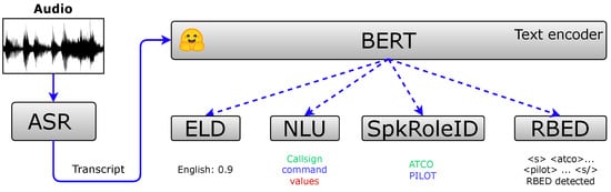 - Zuluaga-Gomez, J.; Sarfjoo, S.S.; Prasad, A.; Nigmatulina, I.; Motlicek, P.; Ondre, K.; Ohneiser, O.; Helmke, H. BERTraffic: BERT-based Joint Speaker Role and Speaker Change Detection for Air Traffic Control Communications. In Proceedings of the IEEE Spoken Language Technology Workshop (SLT), Doha, Qatar, 9–12 January 2023. [Google Scholar]