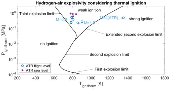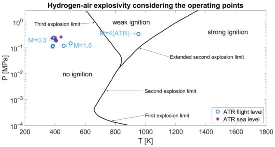 Hydrogen–air explosivity diagram with the ATR operating points reassessed after thermal ignition strategy.