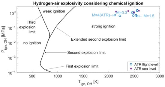 Hydrogen–air explosivity diagram with the ATR operating points reassessed after chemical ignition strategy.