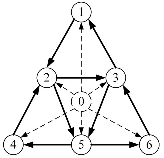We propose a virtual pilot and six quadrotor followers. Each follower can obtain the information of the pilot, and the directed communication topology is shown in Figure 3.