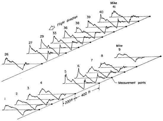 Sonic booms measured under calm and turbulent atmospheric conditions [59].