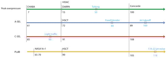 Sonic boom metrics proposed compared to reference values linked to ordinary events [103].