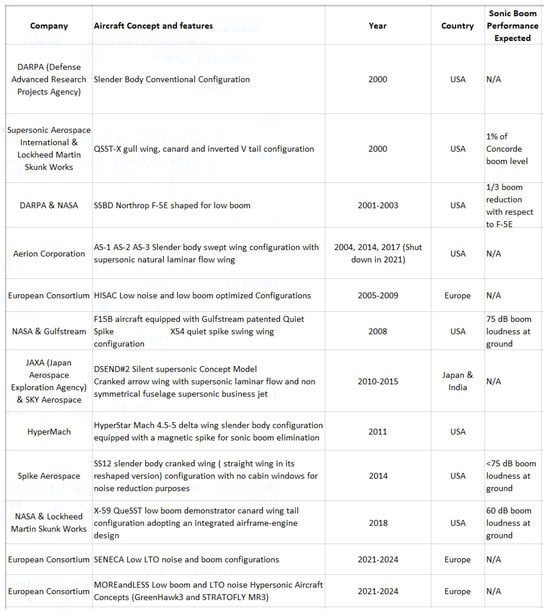 Reducing the sonic boom to acceptable levels for enabling supersonic flights overland is a very hard and challenging objective, and for this reason, the exploration of new disruptive unconventional technologies and configurations is needed. The most promising steps taken in recent years, along with ongoing projects and programs in this regard, are here presented and described.