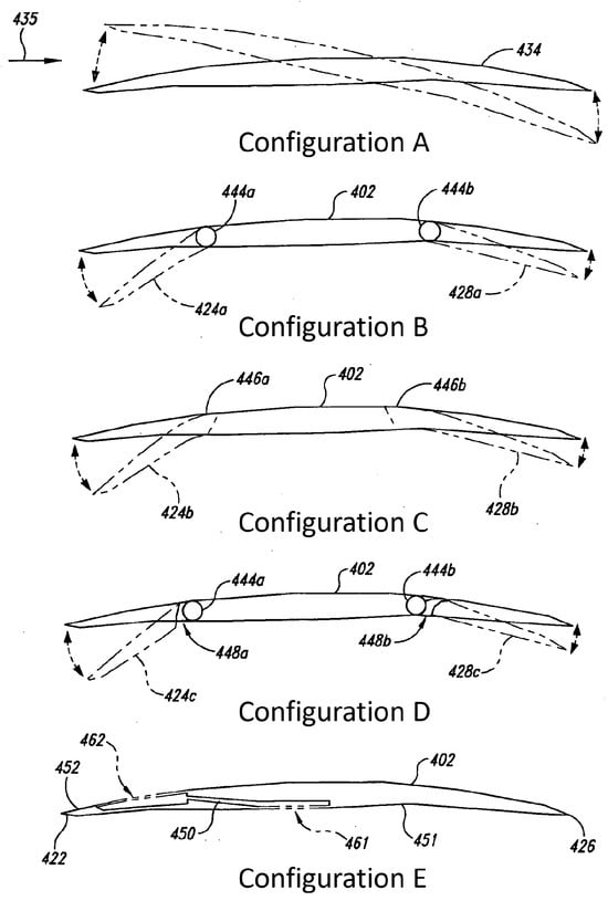 - Adamson, E.; Nelson, C. Supersonic Aircraft with Active Lift Distribution Control for Reducing Sonic Boom. U.S. Patent Appl. 11/039,651, 20 July 2006. [Google Scholar]