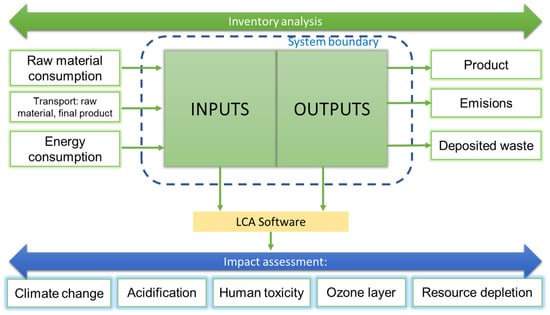 When the goal and scope are defined, the next step is data collection on the input and output flows within the defined system boundary as part of the inventory analysis. The data collected during the inventory analysis step is processed in dedicated LCA software, which generates results in frames from the selected Impact Assessment Methodology. The interaction between Inventory analysis and Impact assessment LCA phases is shown in Figure 3.