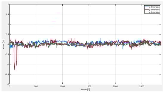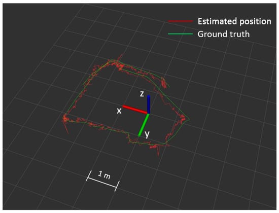Furthermore, we generated a 3D path using MATLAB, as shown in Figure 17, incorporating both the ground truth data and the estimated position. This path provided a comprehensive trajectory visualization, enabling us to analyze the overall performance of the system in tracking the UAV’s movements within the indoor environment.
