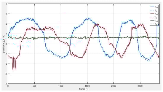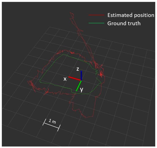 To provide a visual representation of the results, we compared the ground truth position with the estimated position, as shown in Figure 16, which was obtained by running different algorithms on the same dataset. This allowed us to qualitatively assess the system’s ability to track and follow the UAV’s movements. By visually examining the alignment between the ground truth and estimated positions, we could evaluate the system’s precision and robustness.