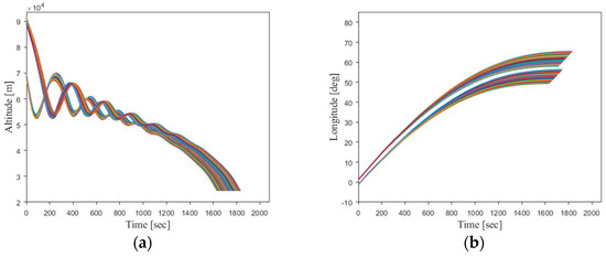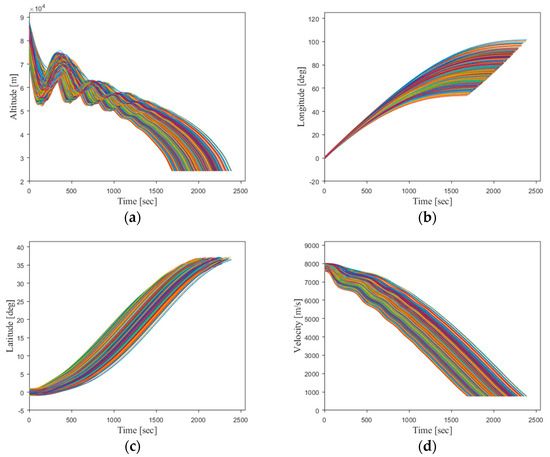 Figure 4 and Figure 5 depict the 6261 optimal trajectories randomly generated within the aforementioned range of initial values for altitude, longitude, latitude, velocity, and flight path angle.