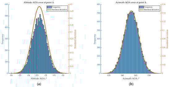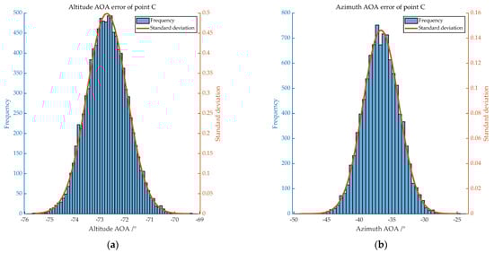 There are two sections to the error analysis. One is the external orientation element, or the UAV’s flying status at the time of target launch, as illustrated in Table 1. The other is the internal orientation element, which is represented by the target pixel coordinates at the time of target launch in Table 2 and Table 3, which displays the distribution of the measurement errors for the external orientation element.