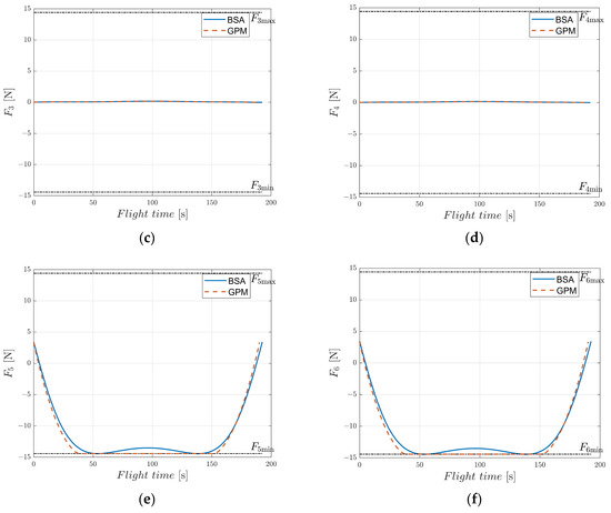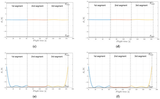 According to the EAD-UAV dynamic equation, the thrusts – of the six EAD thrusters can be determined and expressed as follows by using and their first and second derivatives: