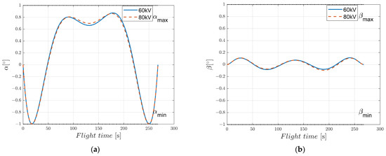 where the angle of attack, , is the angle between the projection of the -axis on the plane and the -axis and the sideslip angle, , is the angle between the -axis and the plane as shown in Figure 5.