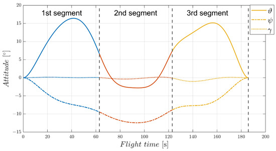 Furthermore, although there are no boundary constraints for the velocity, acceleration, attitude angle, or angular velocity at the intermediate points, these quantities also need to be continuous for the EAD-UAV trajectory to be continuous.