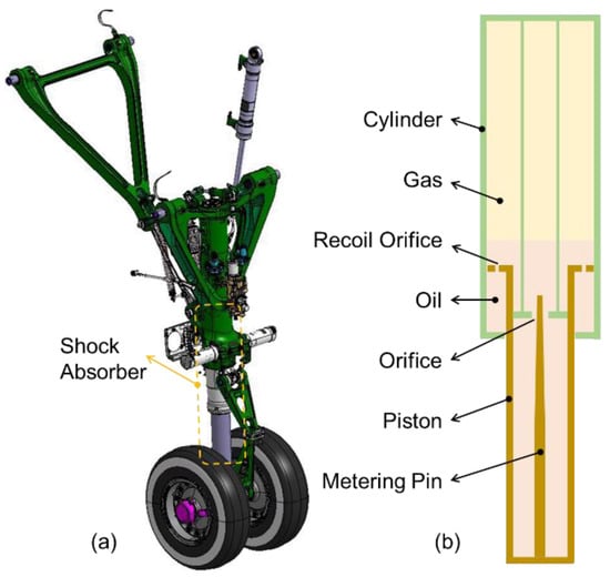 - Jiao, F. Oil damping energy loss analysis of landing gear shock absorber. Proc. Inst. Mech. Eng. Part G J. Aerosp. Eng. 2019, 233, 3096–3106. [Google Scholar] [CrossRef]
