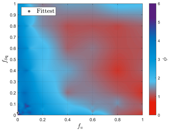 Fixing the value of Q to , of to 10, and of to , a brute force sensitivity analysis over and is carried out to choose adroit values for and . Thanks to the High-Performance Computer of the University of Luxembourg [25], 726 simulations could be run simultaneously where, in addition to interchanging the values of and , the seed of the Random Number Generator (RNG), which controls the initial state at the beginning of the simulation, could also be taken into account. In these simulations, and in the sequel, warm-starting is employed at the beginning of each prediction horizon, meaning that the optimized state and control profiles from the previous prediction horizon are utilized to construct the initial guess for the current one.
