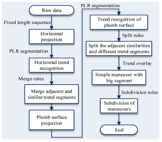 Step 2. Using certain merging rules, the PLR–PIP algorithm is used to segment the trajectory projection, identify the sequence trend, and merge adjacent trend sequences with the same state.
