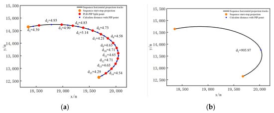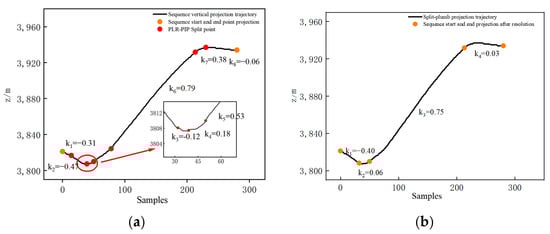 Step 3. Project the merged trend sequences onto the vertical plane; the PLR–PIP algorithm is used to segment the trajectory projection, identify the sequence trend, and subdivide the trend sequences by subdivision rules.