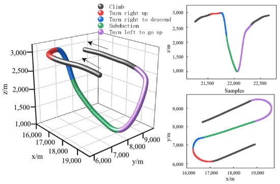Step 4. Superimpose the trend states of the two plane projections to obtain the basic aircraft maneuvers, shown in Figure 10.