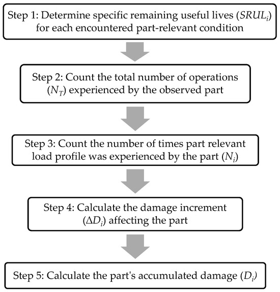 The design of the knowledge acquisition module ensures comprehensive data collection to facilitate accurate RUL determinations based on operational and maintenance histories. For accurate prognosis, the primary RUL degradation mechanism must first be identified. Degradation-relevant parameters are essential factors for RUL prognosis [19]. Although operational loads are often the primary cause of degradation, other factors, such as part corrosion, should also be considered. Parts showing signs of corrosion must be replaced or repaired to ensure their safety. Based on findings from previous research [20] and the reasoning stated in Section 2 of this paper, this study focuses on material fatigue as a significant deterioration mechanism.
