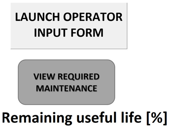 The purpose of the explanation module is to store information on required maintenance actions, i.e., the maintenance schedule of the observed part, and present this information depending on the calculated total RUL of the observed part. It does this by linking the accumulated damage value to the appropriate required maintenance action according to the aircraft’s maintenance manual or program. The aircraft’s maintenance program lists prescribed maintenance actions according to the observed parts’ operating hours or actual condition based on an inspection performed at predetermined intervals or after operational occurrences compromising structural integrity. The accumulated damage calculated with this method is a reciprocal value of the observed part’s RUL, considering recorded operational information input into the knowledge acquisition module. The prescribed maintenance actions are input into a Macro VBA function, linked to the “View required maintenance action” button displayed in Figure 5, performing logical tests to determine and present the required maintenance action.