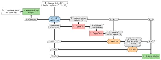 - McDonald, R.A.; Gloudemans, J.R. Open Vehicle Sketch Pad: An Open Source Parametric Geometry and Analysis Tool for Conceptual Aircraft Design. In Proceedings of the AIAA SCITECH 2022 Forum, San Diego, CA, USA, 3–7 January 2022; p. 4. [Google Scholar]