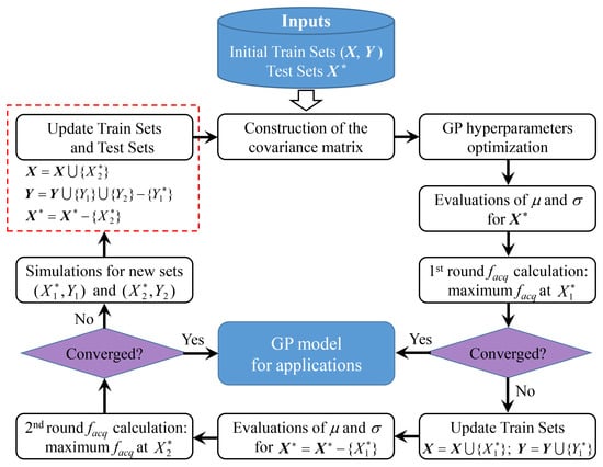 It should be noted that after adding the first selected test point to the training sets, it is not necessary to train the GP model following Step 2, while only the covariance matrix needs to be updated. In this way, two new training samples can be selected per each iteration.