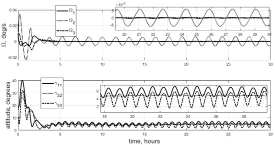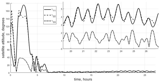 Figure 2. Most importantly, the developed sliding control cannot be used near the required attitude, so the final accuracy is the same as that for control scheme (10) or whichever control scheme is used near the required attitude.