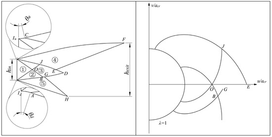 The u/acr–v/acr graph is also shown in Figure 7, where λ is speed coefficient, defined as the ratio of velocity magnitude to critical speed of sound.