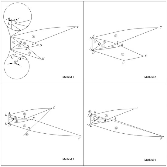 (3) The kernel region, IuCDAIdO, labeled as serial numbers 2 and 3, is calculated by considering θu and θd. Here, θu and θd represent the initial expansion angle of the ramp and flap, respectively. They are shown in Figure 7. When θu and θd are provided, asymmetrical factor β can be obtained as follows: