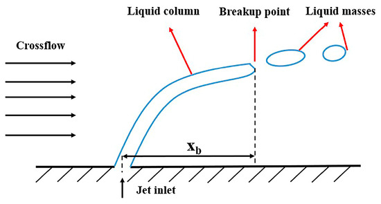 Atomization, evaporation, and mixing processes play crucial roles in controlling the combustion efficiency and stability of fuel engines. Liquid jets in a crossflow configuration are particularly important as they are commonly used in various equipment such as burners, afterburners, and ramjets. The primary breakup of the jet directly affects the jet atomization. Therefore, in order to optimize fuel atomization, it is important to understand the jet breakup process [1,2,3,4].