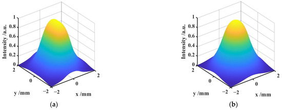 The laser used for the experiment had a profile with a peak at the center, defined as a “Gaussian” and “Top-hat” profile, as shown in Figure 4a. The laser intensity varied depending on the radial position. For that reason, the bow-shaped ionization wavefront shown in Figure 4b was formed. For this calculation, the ionization wavefront shape was given by these experimentally obtained results.